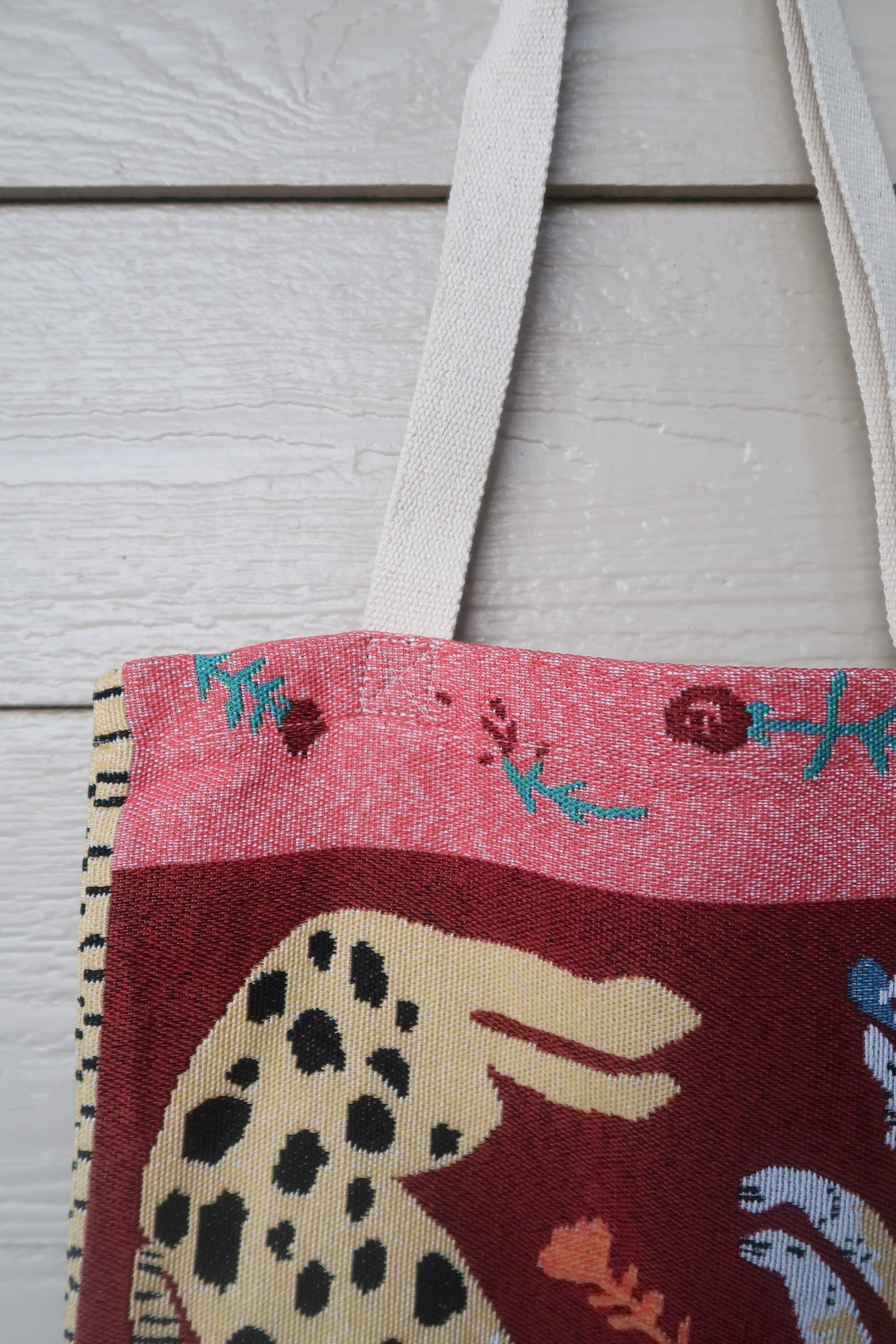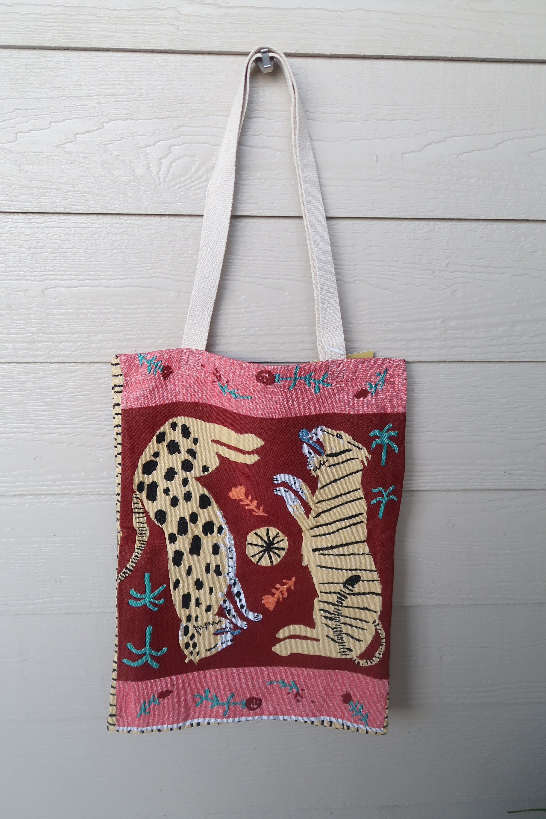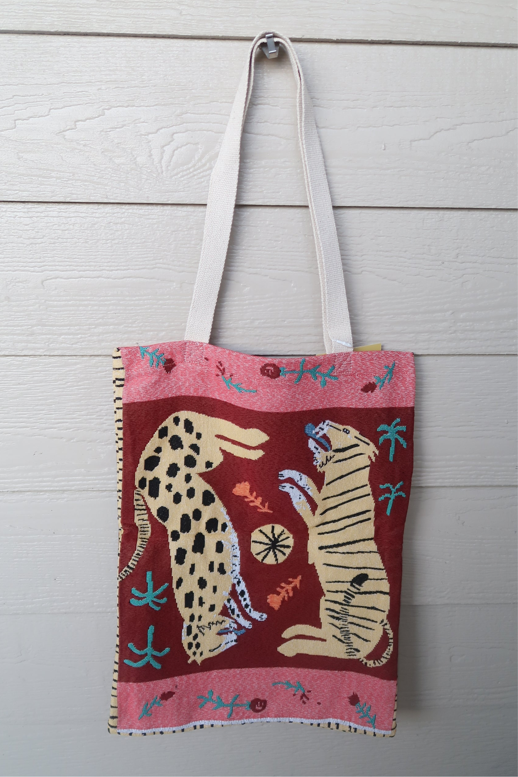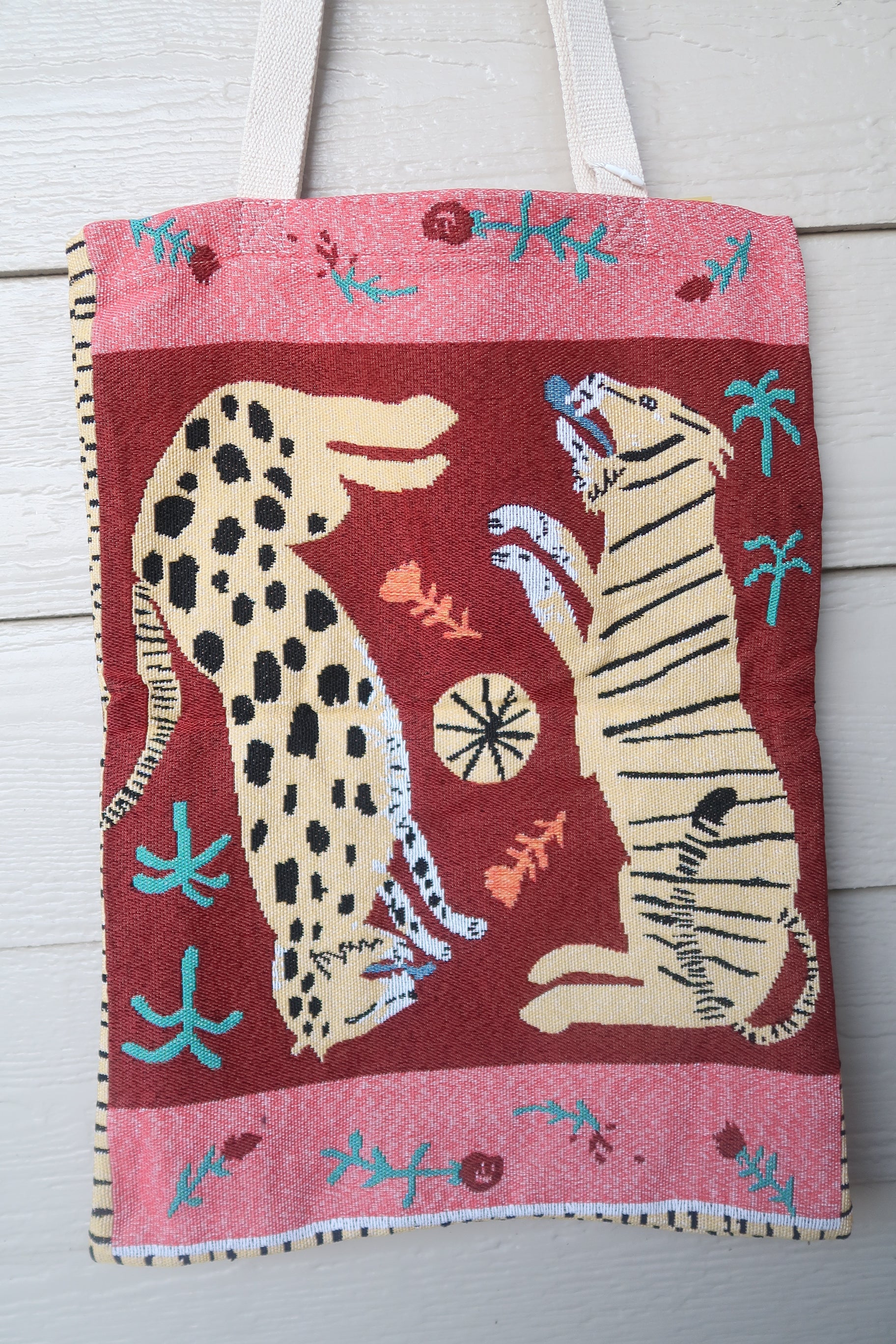 Unleash your wild side with the Boho Wild Duo Tote! This stunning bag features an abstract design with a cheetah and tiger, bringing a touch of untamed elegance to your everyday style. Set against a beautiful pink and mauve background, the vibrant colors and unique pattern make this tote a standout accessory for any outfit.