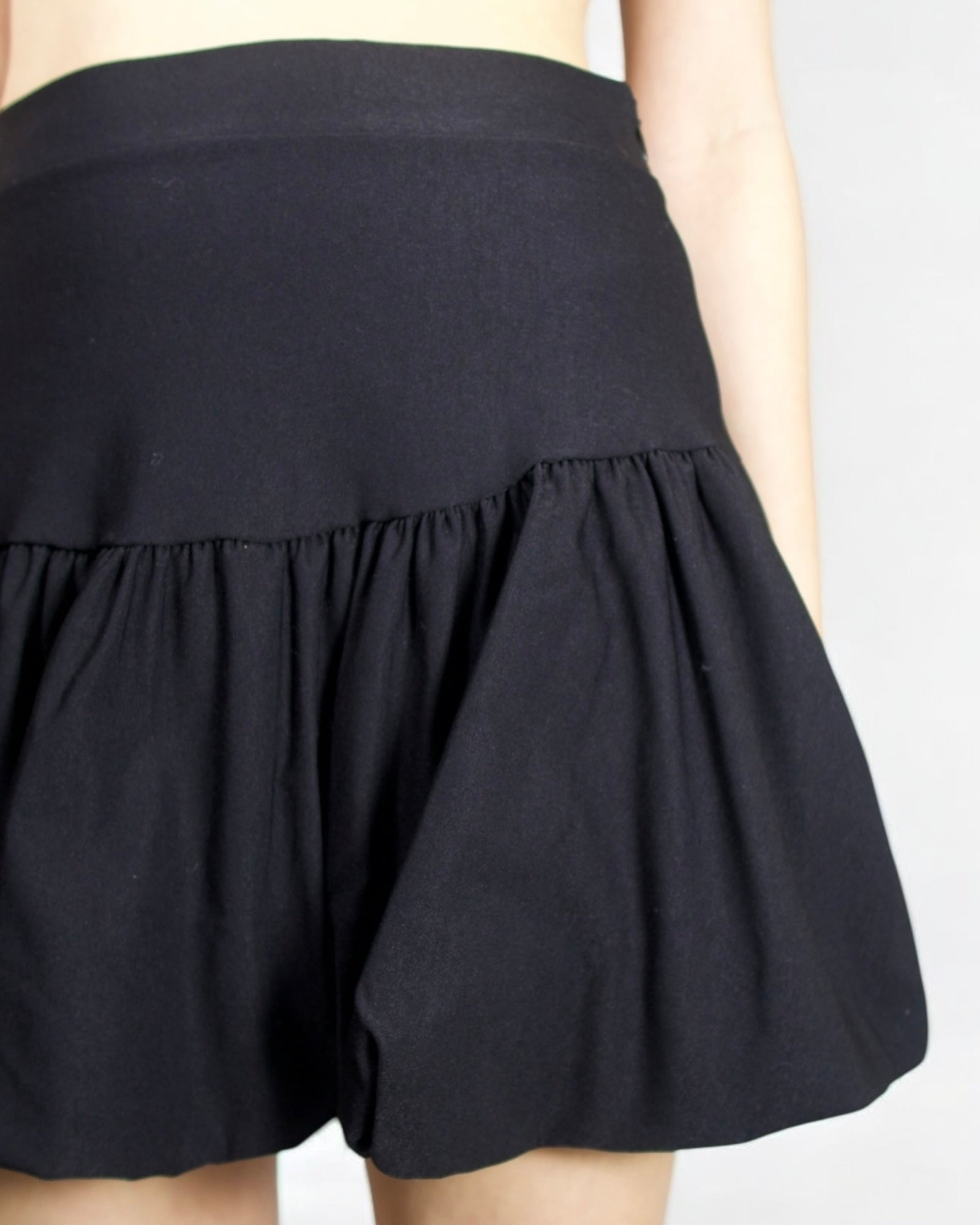 The Midnight Bubble Skirt is a statement piece that brings effortless elegance with a fun, flirty twist. Designed with a voluminous bubble silhouette, this black mini skirt is perfect for elevating any outfit, whether you’re dressing it up for a night out or styling it casually for a daytime look. The lightweight fabric gives it a structured-yet-airy feel, making it a must-have in your wardrobe.