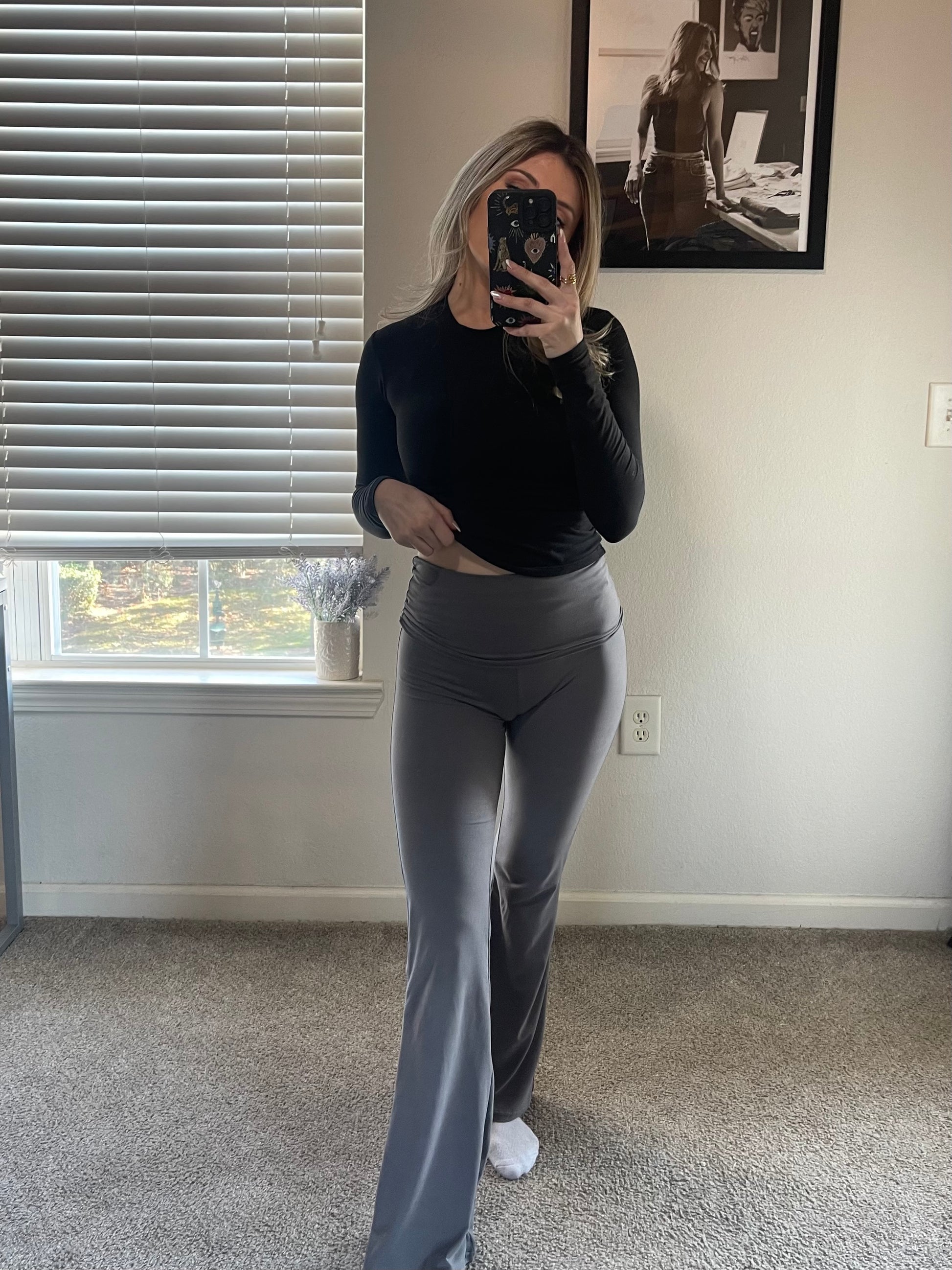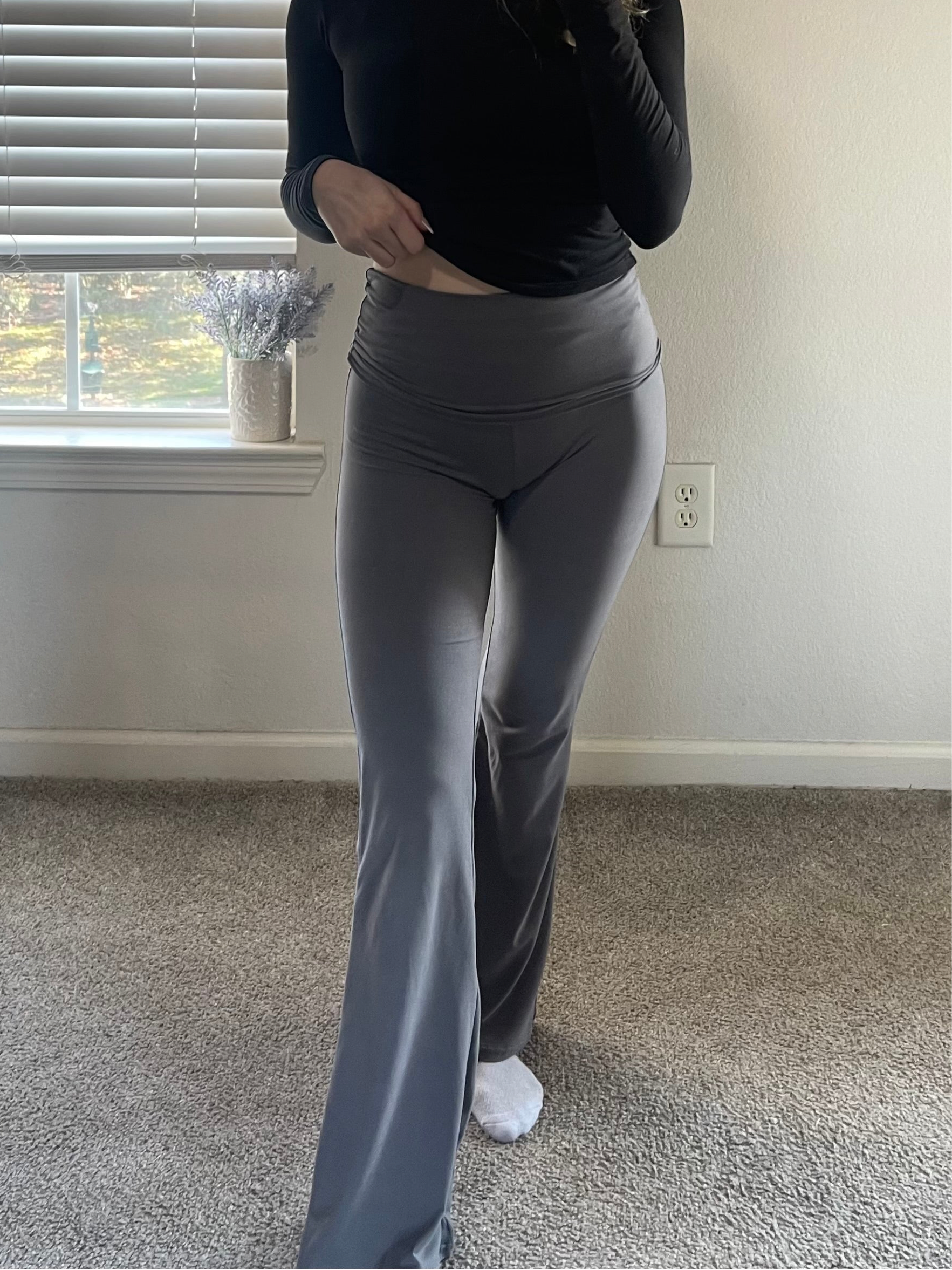 Classic and cool, the Slate Elevate Flare Leggings are your new go-to for an effortlessly sleek look. Designed with a comfortable fold-over waistband and a flattering flare, these leggings offer a perfect balance of style and comfort. Whether you’re heading to a yoga class or running errands, they’ve got you covered for all your laid-back plans.
