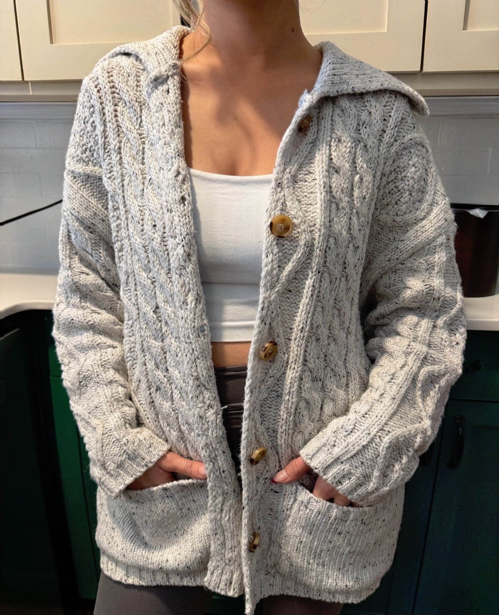 The Aspen Cardigan feels like a weekend spent in the mountains — perfectly oversized, soft to the touch, and made for layering as the air turns crisp. Its brushed knit texture and relaxed fit bring that effortless “just threw it on” charm that still looks put-together.