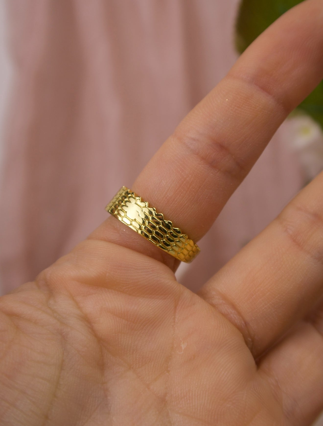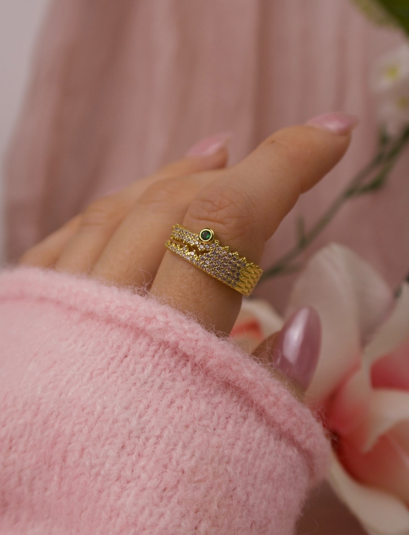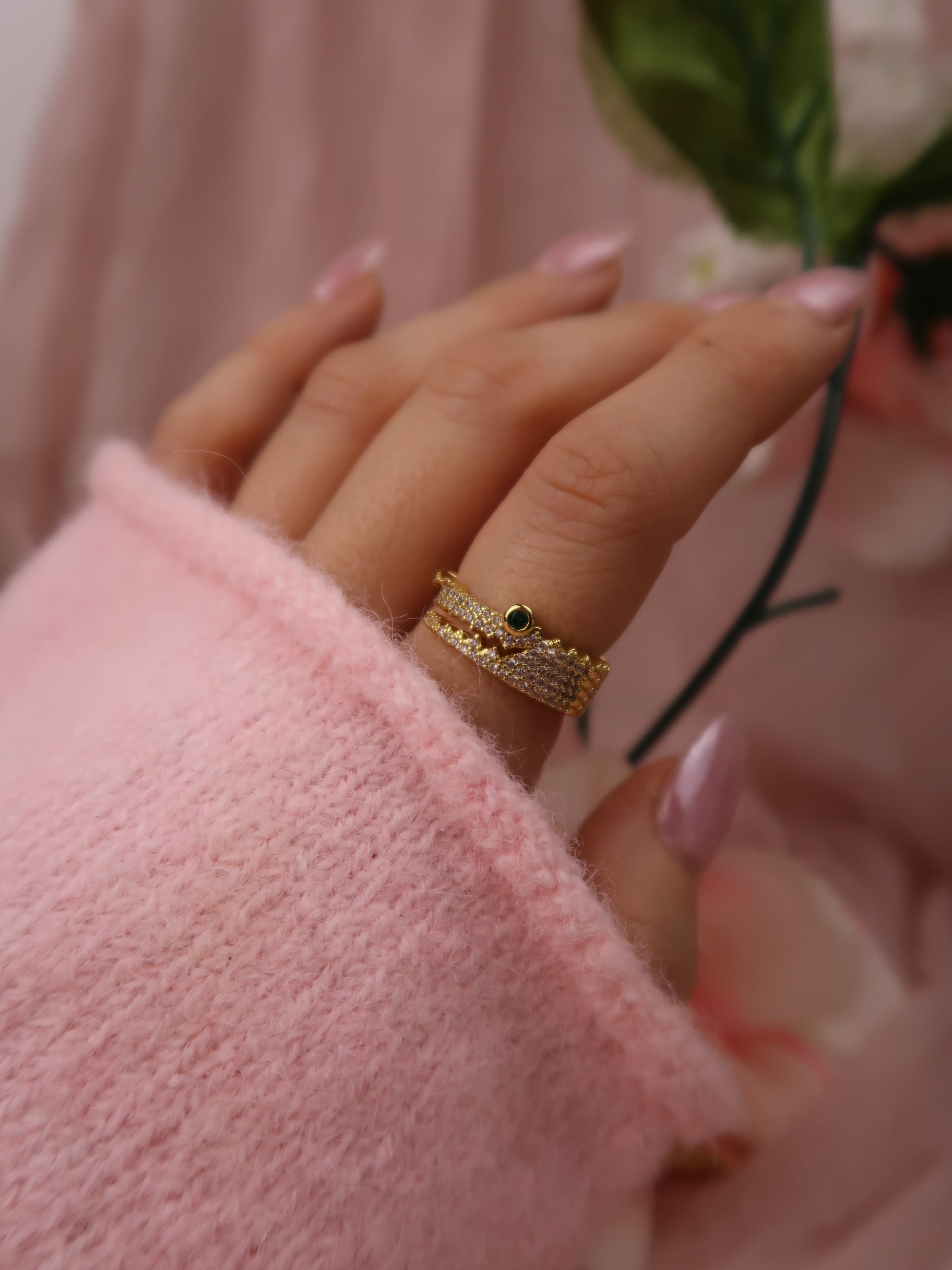 For the girls who bite back 🐊 The Gator Glimmer Ring features a bold crocodile silhouette wrapped in a sleek gold finish, complete with micro crystal details and a striking emerald green eye. Designed to wrap gently around your finger with a comfortable open fit, this ring is a conversation starter that still stacks beautifully with your daintier pieces.